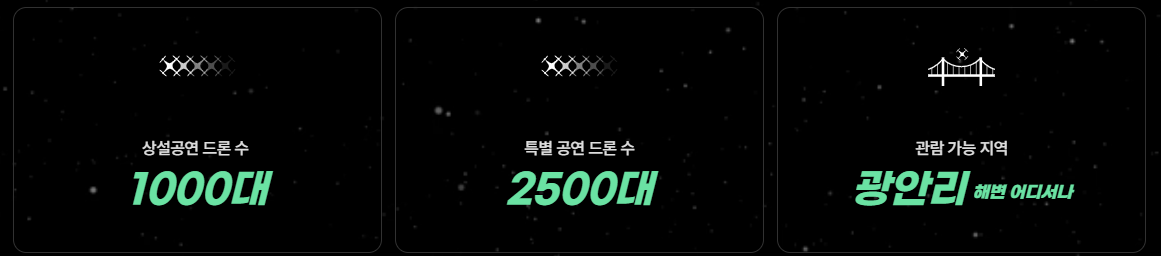 - 특징: 평소보다 더 많은 수의 드론(2,500대 규모)이 동원되어 더욱 웅장하고 풍성한 퍼포먼스를 선보일 예정이라고 합니다.