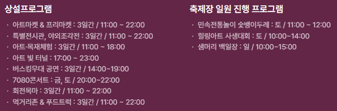 - 운영 시간: 3일간 / 11:00 ~ 22:00 (전 기간 상설)