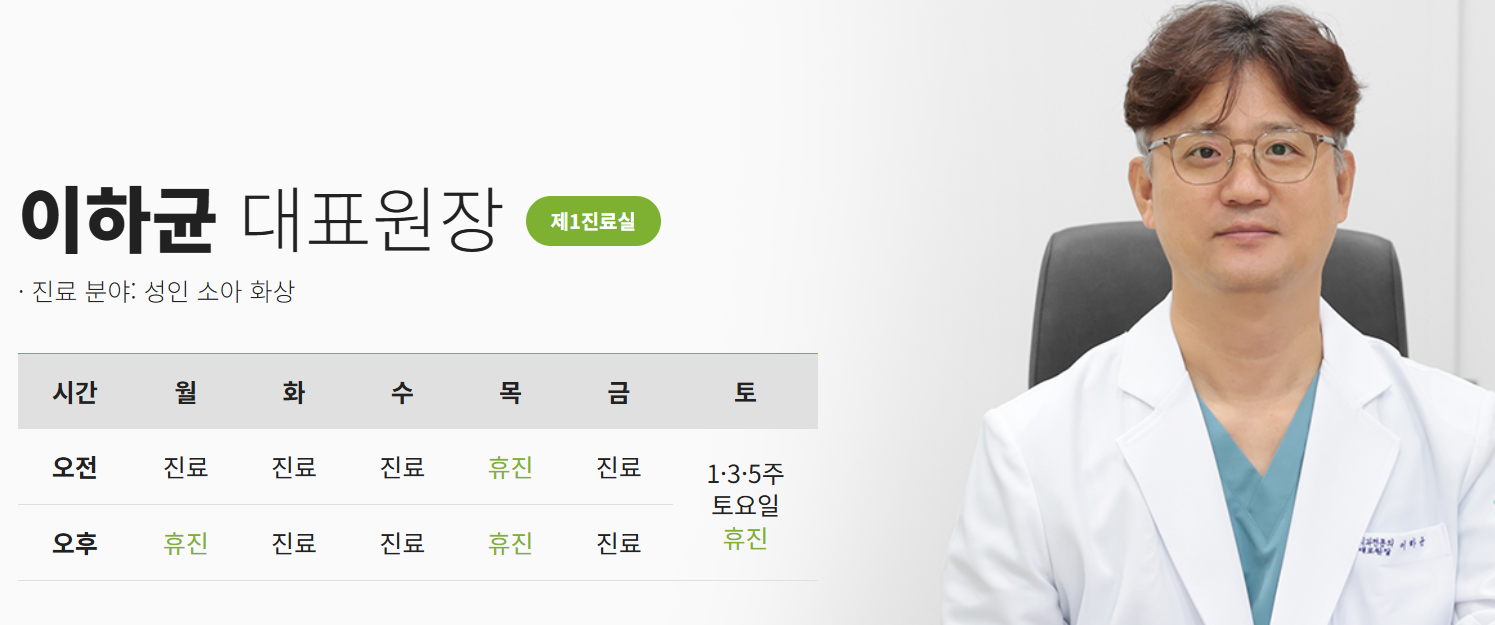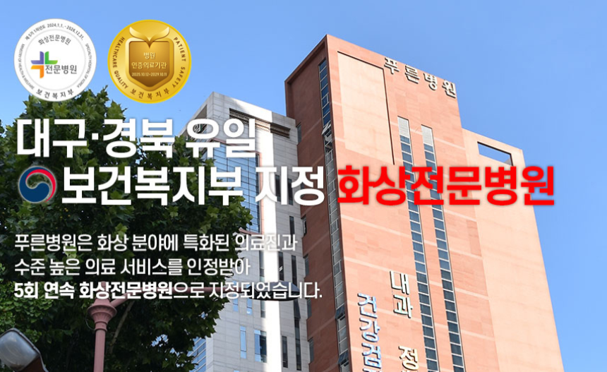 대구 경북 유일 보건복지부 지정인 화상전문병원이라 신뢰가 갔다.