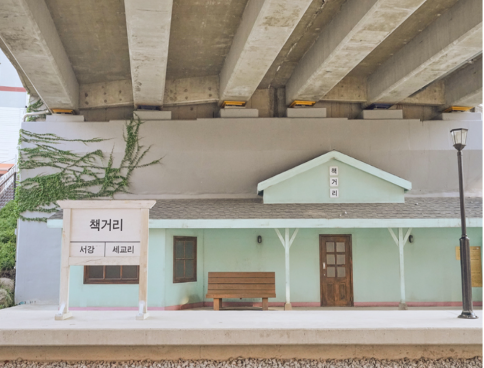 철길 건널목의 향수를 느낄 수 있고, 책을 테마로 한 공간이 조성되어 있어 조용히 산책하기 좋습니다.