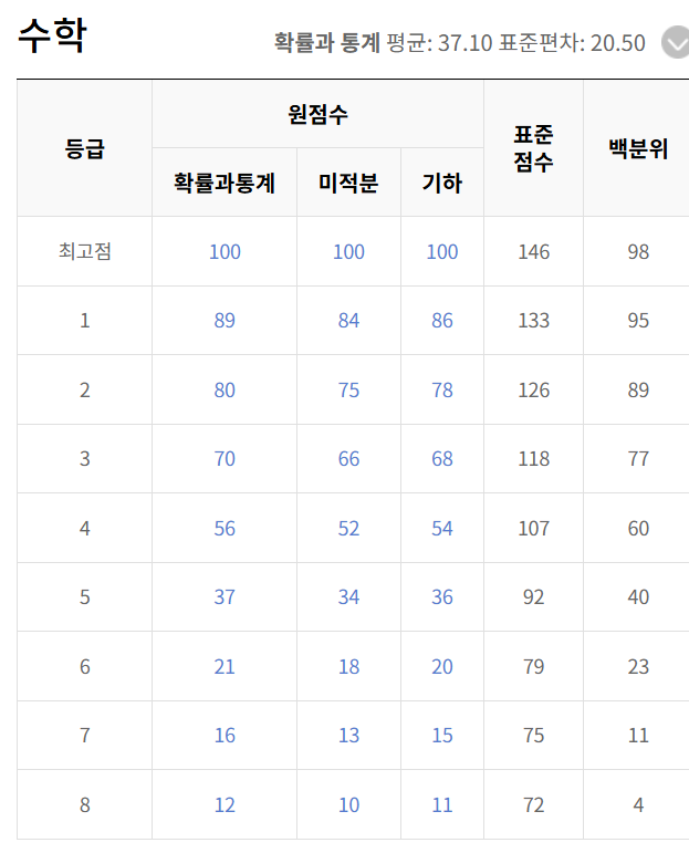 수학 | 9월 모평 대비 소폭 상승 (미적분 까다로움) |