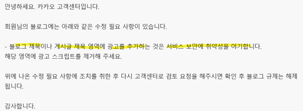 갑작스럽게 블로그 제한이 걸려와 너무 당황스러워 구글링을 해보았지만