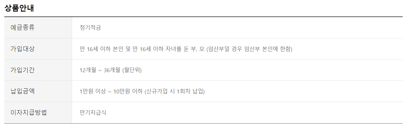 가입을 고려하고 있다면, 가족의 재정 계획에 맞춰 이 상품을 활용해 자녀의 미래를 위한 저축을 시작해 보세요.