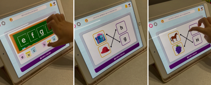 Purple English를 통해서 대문자 소문자 연결도 자연스럽게 인지 하게 되더라구요/