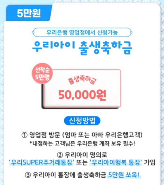 대상: 우리은행 고객의 24년 출생아 (선착순 5만명 대상)