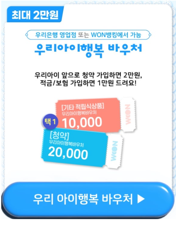 2) 우리아이 명의로 우리 SUPER 주거래통장 또는 우리아이행복통장 가입
