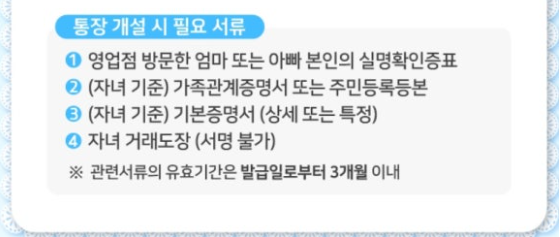 우리은행 아이통장 개설은 비교적 간단하지만, 부모나 법정대리인이 아이 명의로 계좌를 개설해야 하므로 몇 가지 준비 서류가 필요합니다.