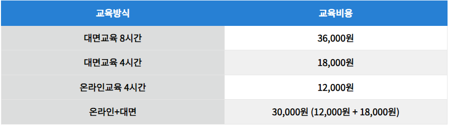 온라인 또는 오프라인으로 신청할 수 있습니다. 온라인은 최대 4시간까지만 인정되며 온라인 수강 후 60일 이내 대면교육을 이수해야하니 일정을 꼭 준수하세요.