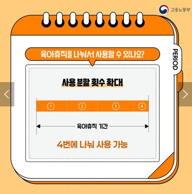 육아휴직을 한 번에 길게 사용하는 것이 부담스러운 경우, 여러 번에 걸쳐 나누어 사용할 수 있도록 한 제도입니다. 특히, 육아와 업무를 병행해야 하는 부모들에게는 육아휴직을 유연하게 사용할 수 있는 기회가 됩니다. 예를 들어, 자녀의 나이가 들면서 돌봄이 필요한 특정 시기에 육아휴직을 나눠 사용할 수 있게 됨으로써, 근로자가 업무 복귀와 육아 사이에서 더 나은 선택을 할 수 있습니다.