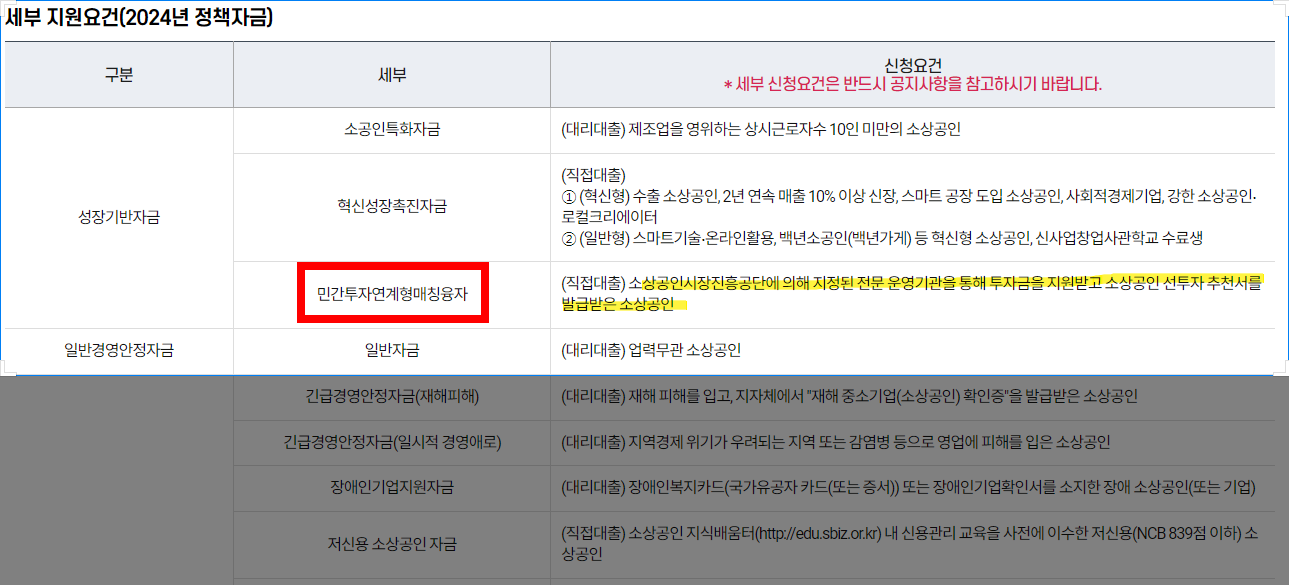 지원 조건은 민간 투자자의 투자 유치가 필수적입니다. 즉, 사업자가 스스로 투자자를 유치한 후에야 매칭 융자를 신청할 수 있습니다. 다음과 같은 조건을 만족해야 지원이 가능합니다.