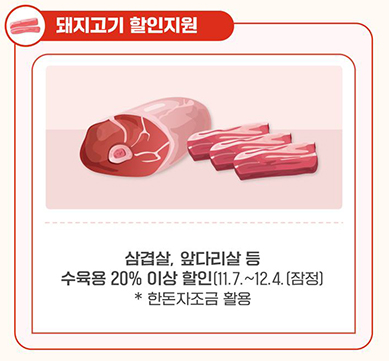 삼겹살, 앞다리살 등 수육용 20% 이상 할인(11.7.~12.4.(잠정))