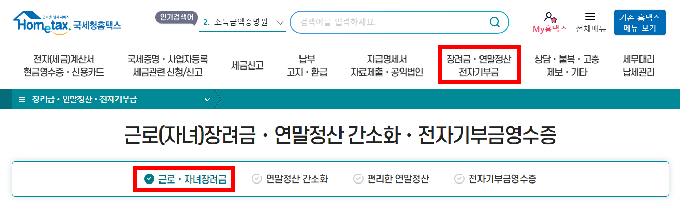 국세청 홈택스 접속 (www.hometax.go.kr)