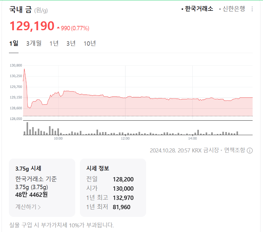 금값은 1g 또는 1oz(온스)를 기준으로 가격이 산정되며, 시세는 실시간으로 변동합니다. 최근 금 시세는 1g당 12만 원대에서 형성되어 있으며, 국제 경제 상황에 따라 변동폭이 커질 수 있습니다. 2023년 하반기에는 경기 둔화 우려가 커지며 금값이 오름세를 보였으며, 2024년 이후에는 인플레이션 우려와 글로벌 금리 인상이 변수로 작용하고 있습니다.