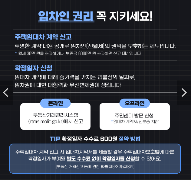 확정일자는 임차인의 주거 보증금을 우선적으로 보호받게 해주는 제도입니다.