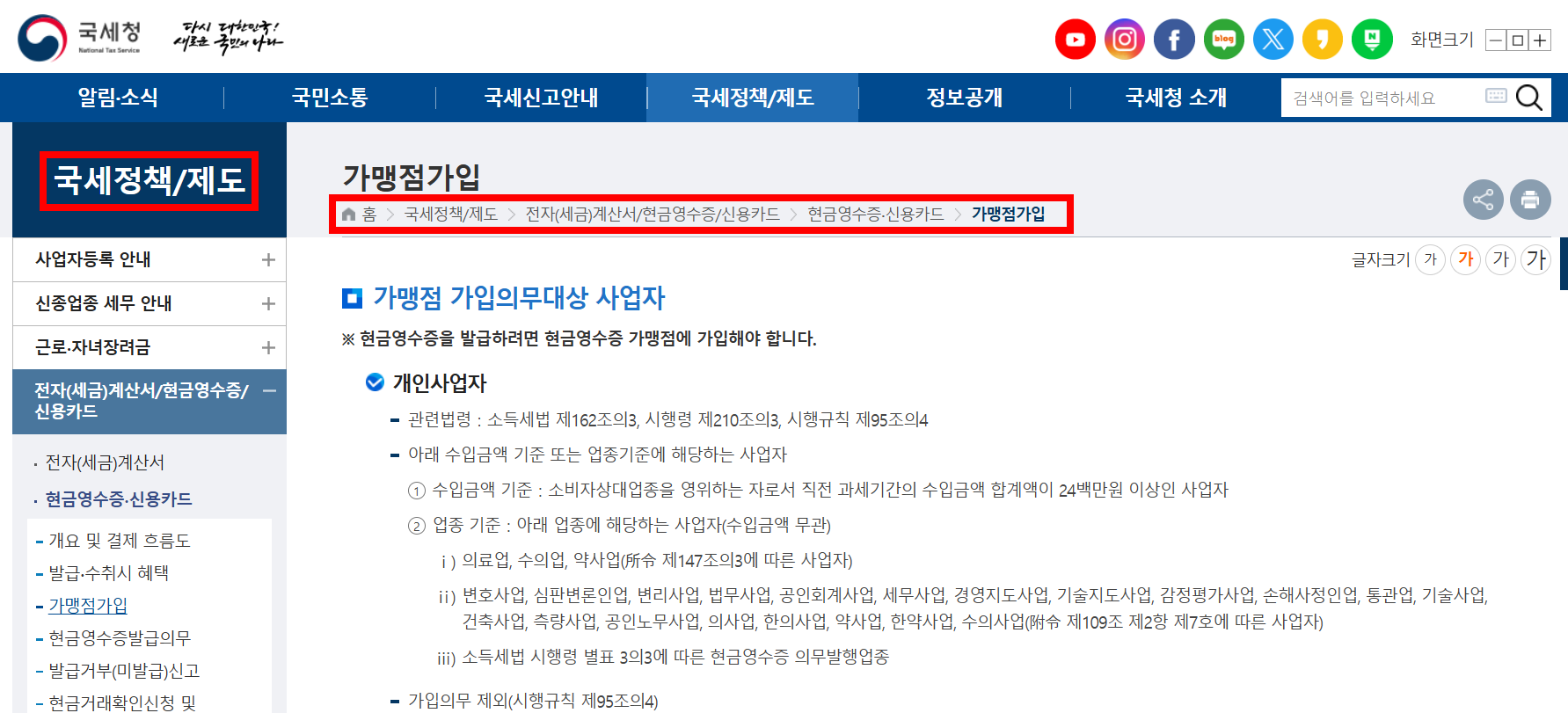 현금영수증 가맹점 가입 대상자