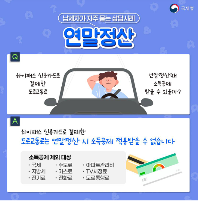 1. 하이패스 결제 도로교통료는 소득공제 제외 항목에 해당되어 공제가 불가합니다.