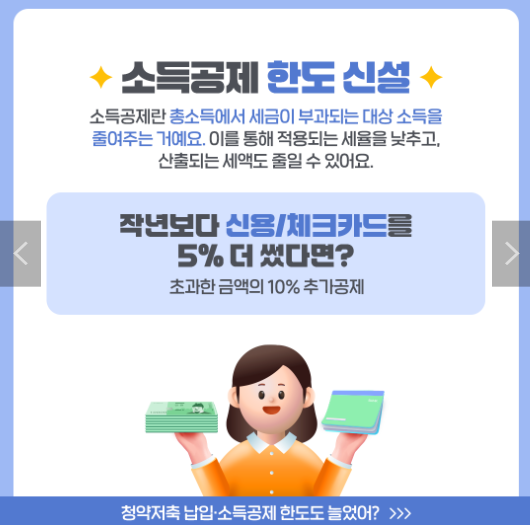 예) 주택청약저축 납입액, 신용카드 사용 공제 등