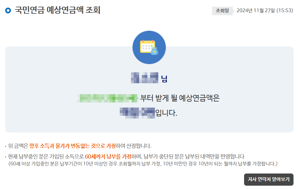 - 가입 기간: 국민연금에 가입한 총 기간.