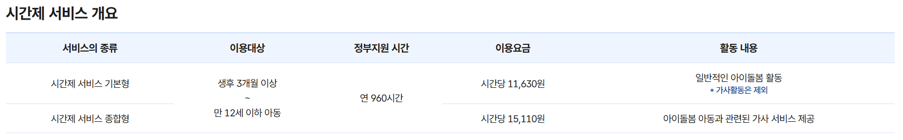 아이돌봄 서비스의 기본 비용은 이용 시간과 서비스 유형에 따라 다릅니다.