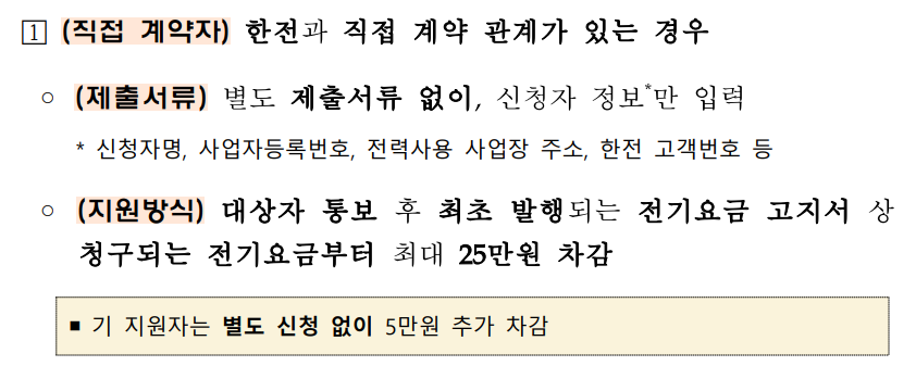- 직접계약자 신청 : 한전과 직접 계약을 체결하고 사업장 대표자와 한전 계약자 명의가 같은 경우