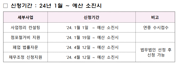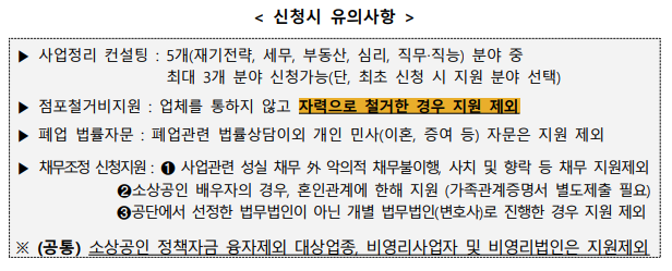 - 소득 요건: 폐업 전 연매출이 일정 기준 이하인 경우에 한해 지원 가능합니다.