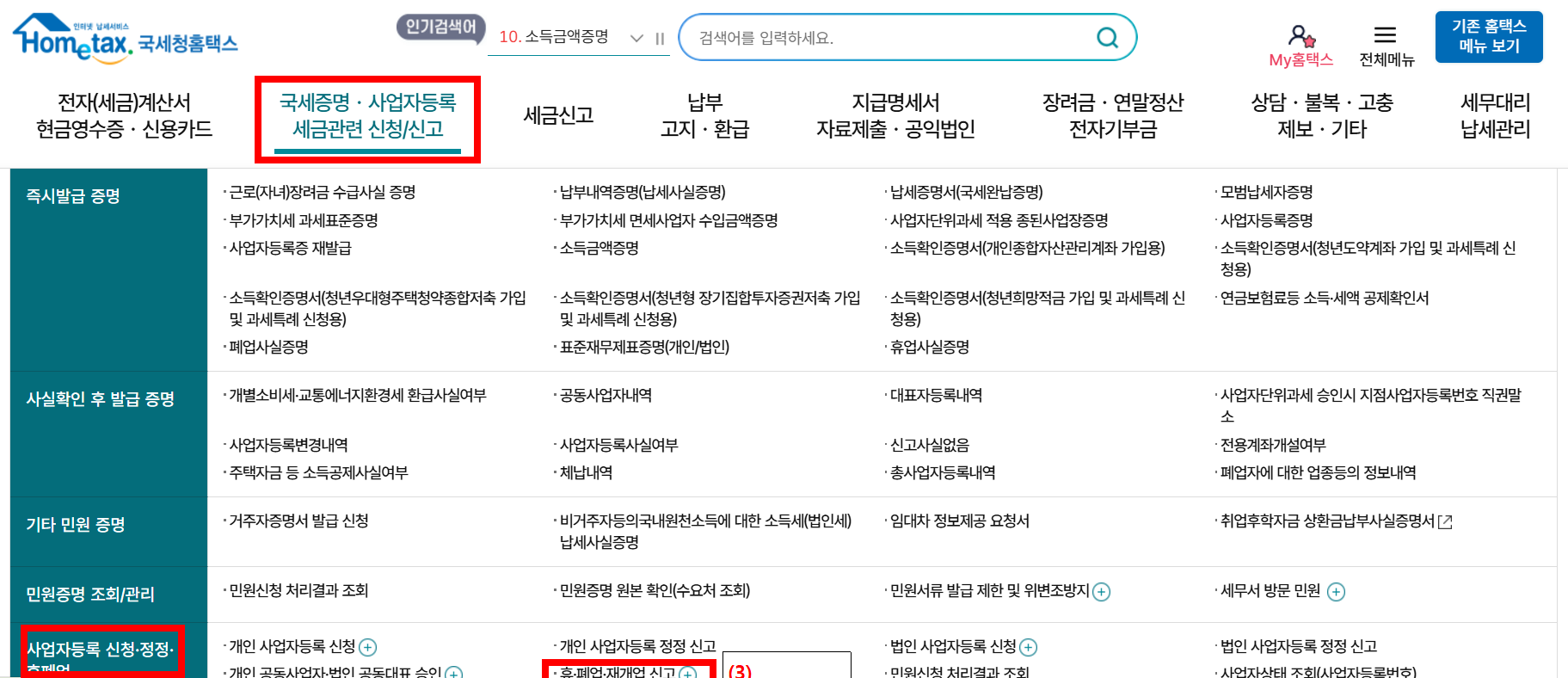세무서에서 신고가 처리되면 사업자 등록이 말소됩니다.