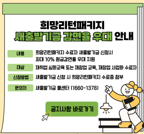 - 신청 시 희망리턴패키지 수료증을 반드시 첨부해야 합니다.
