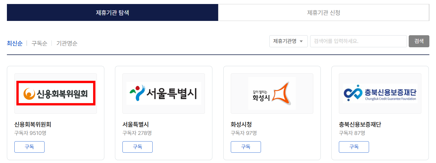 3) 제휴기관 중 신용회복위원회 클릭