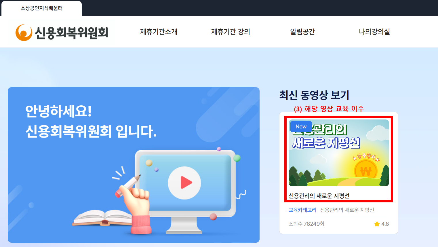 지식배움터 누리집에서 신용관리교육 이용 방법